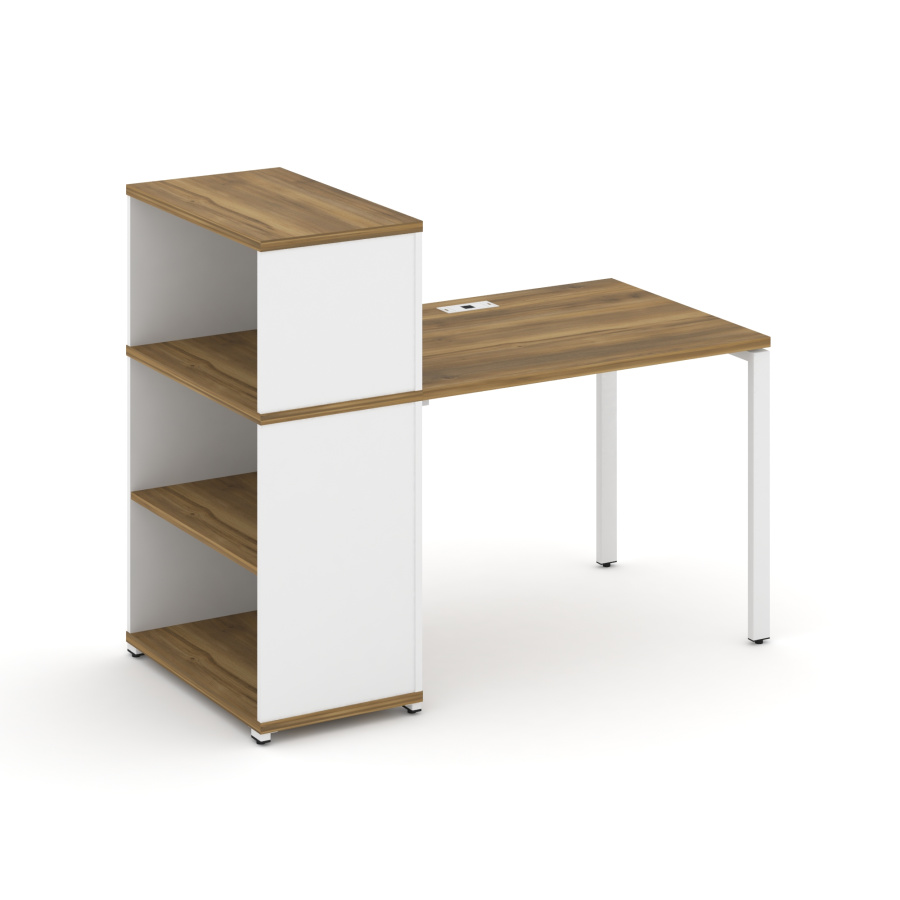 Concept Стол рабочий с опорным стеллажом с надставкой низ. CN.SP-209 Сандал Янтарный/Белый Бриллиант/Металл Белый 1400*720*1140
