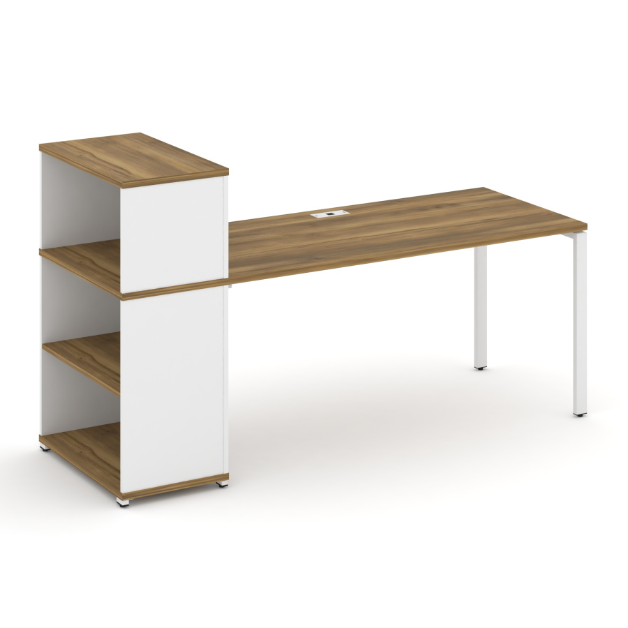 Concept Стол рабочий с опорным стеллажом с надставкой низ. CN.SP-212 Сандал Янтарный/Белый Бриллиант/Металл Белый 2000*720*1140