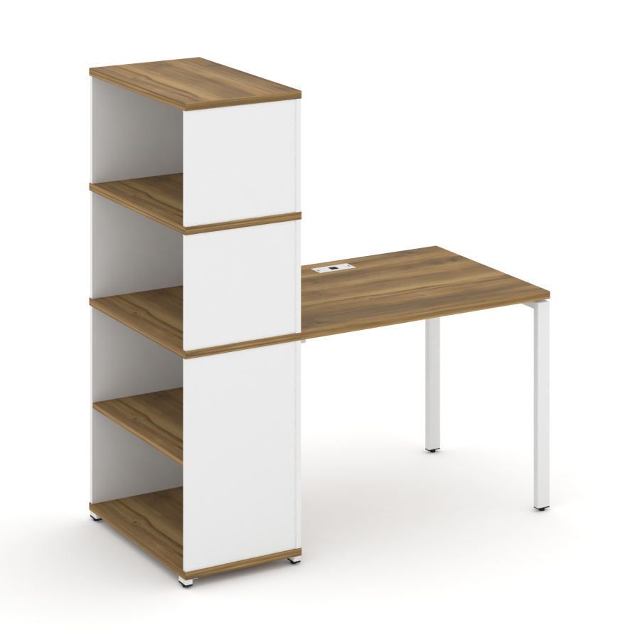 Concept Стол рабочий с опорным стеллажом с надставкой выс. CN.SP-213 Сандал Янтарный/Белый Бриллиант/Металл Белый 1400*720*1530