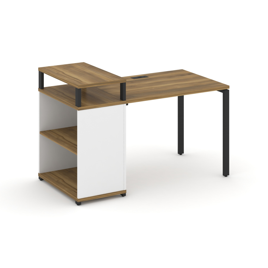 Concept Стол рабочий с опорным стеллажом с верх. горизонтом CN.SP-205 Сандал Янтарный/Белый Бриллиант/Металл Черный 1400*720*917