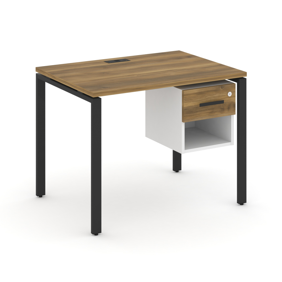 Concept Стол рабочий с подвесной тумбой 1 открытой нишей и одним ящ. CN.SP-117 W Сандал Янтарный/Белый Бриллиант/Металл Черный 980*720*750
