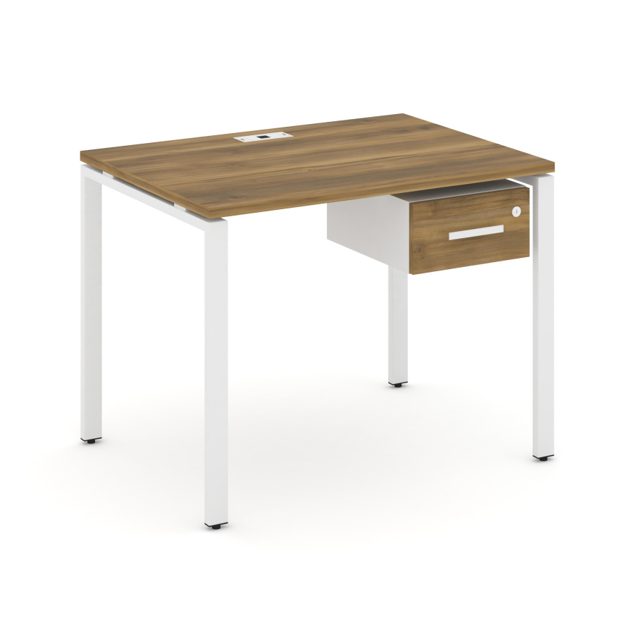 Concept Стол рабочий с подвесной тумбой с одним ящ. CN.SP-109 W Сандал Янтарный/Белый Бриллиант/Металл Белый 980*720*750