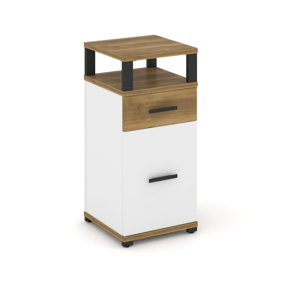 Concept Тумба опорная/приставная 1 ящ.+1 распаш. фасад с надставкой CN.TUO-006 W Сандал Янтарный/Белый Бриллиант/Металл Черный 420*420*917