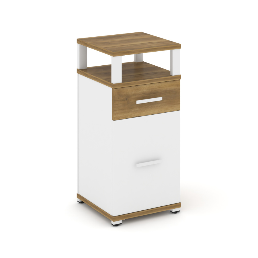 Concept Тумба опорная/приставная 1 ящ.+1 распаш. фасад с надставкой CN.TUO-006 W Сандал Янтарный/Белый Бриллиант/Металл Белый 420*420*917