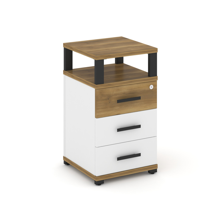 Concept Тумба приставная 3 ящ. с надставкой CN.TUP-003 W Сандал Янтарный/Белый Бриллиант/Металл Черный 420*420*750