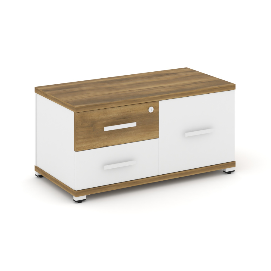 Concept Тумба приставная широкая 2 ящ.+1 распаш. фасад CN.TSP-004 W Сандал Янтарный/Белый Бриллиант/Металл Белый 836*420*416