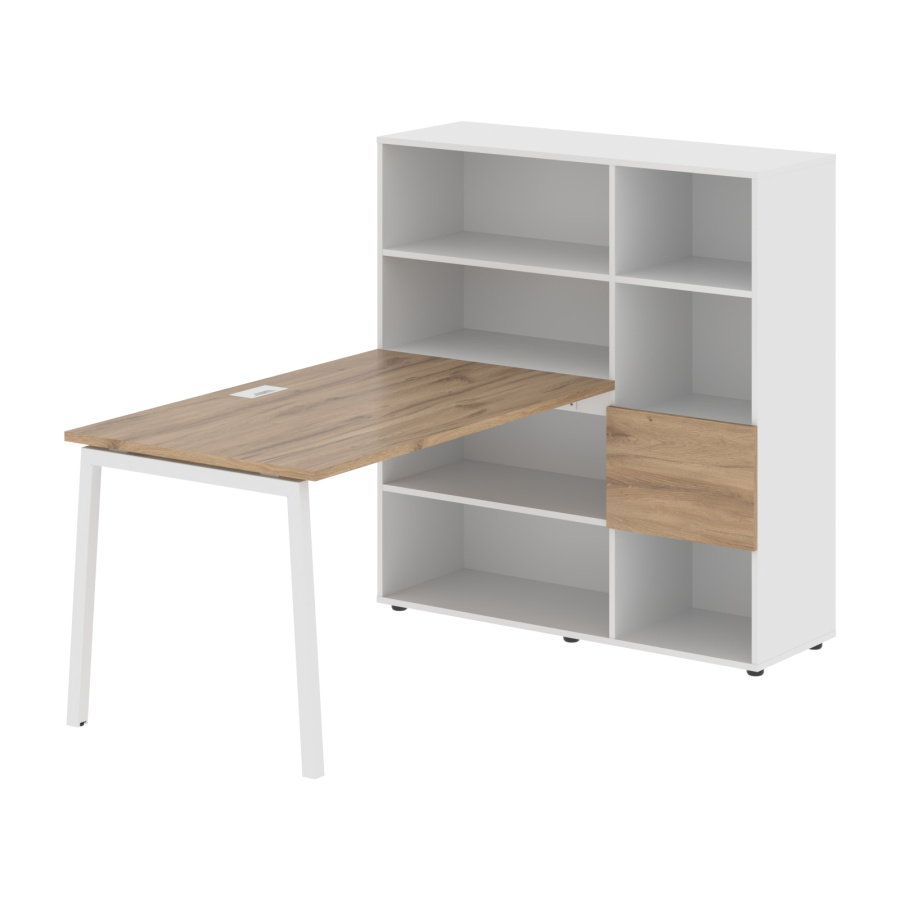 Столешница глубиной 800мм, комплектуется регулируемой опорой L-образной формы из профиля трубы 40х40, комплектом телескопических траверс и двумя кронштейнами для крепления к стеллажу.
