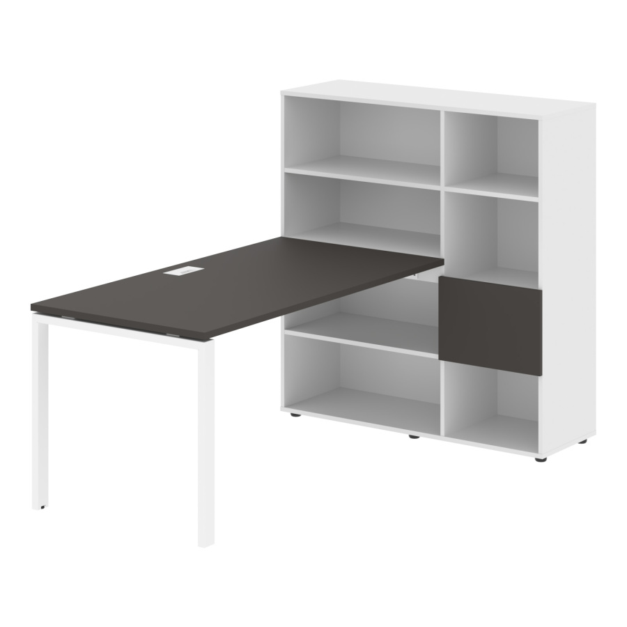Каркасы стеллажей полностью из ЛДСП т.18мм с кромками ПВХ т.2 и 0,45мм, задняя стенка из ЛДСП. Комплектуется малой дверью в цвет столешницы и регулируемыми опорами h= 27мм.