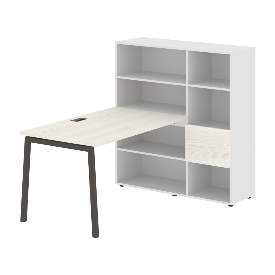 Столешница глубиной 800мм, комплектуется регулируемой опорой L-образной формы из профиля трубы 40х40, комплектом телескопических траверс и двумя кронштейнами для крепления к стеллажу.