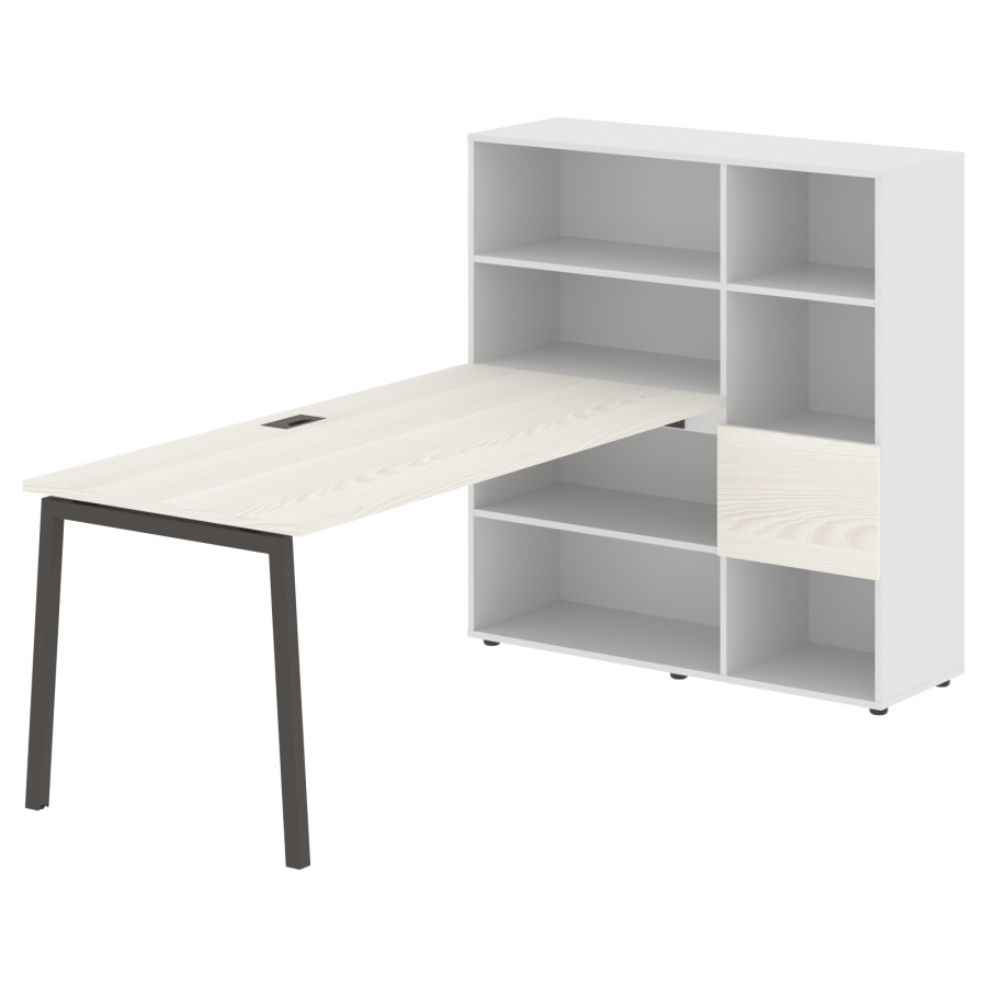 Столешница глубиной 800мм, комплектуется регулируемой опорой L-образной формы из профиля трубы 40х40, комплектом телескопических траверс и двумя кронштейнами для крепления к стеллажу.