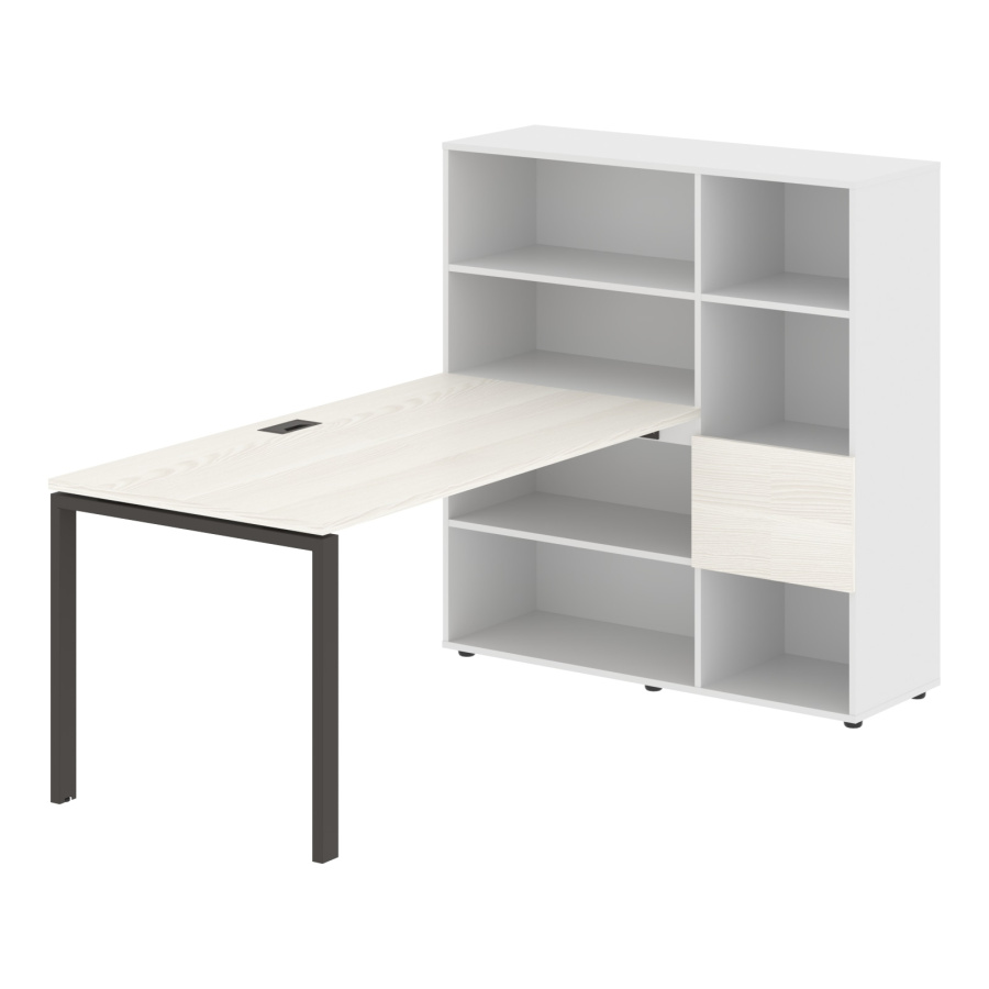 Каркасы стеллажей полностью из ЛДСП т.18мм с кромками ПВХ т.2 и 0,45мм, задняя стенка из ЛДСП. Комплектуется малой дверью в цвет столешницы и регулируемыми опорами h= 27мм.