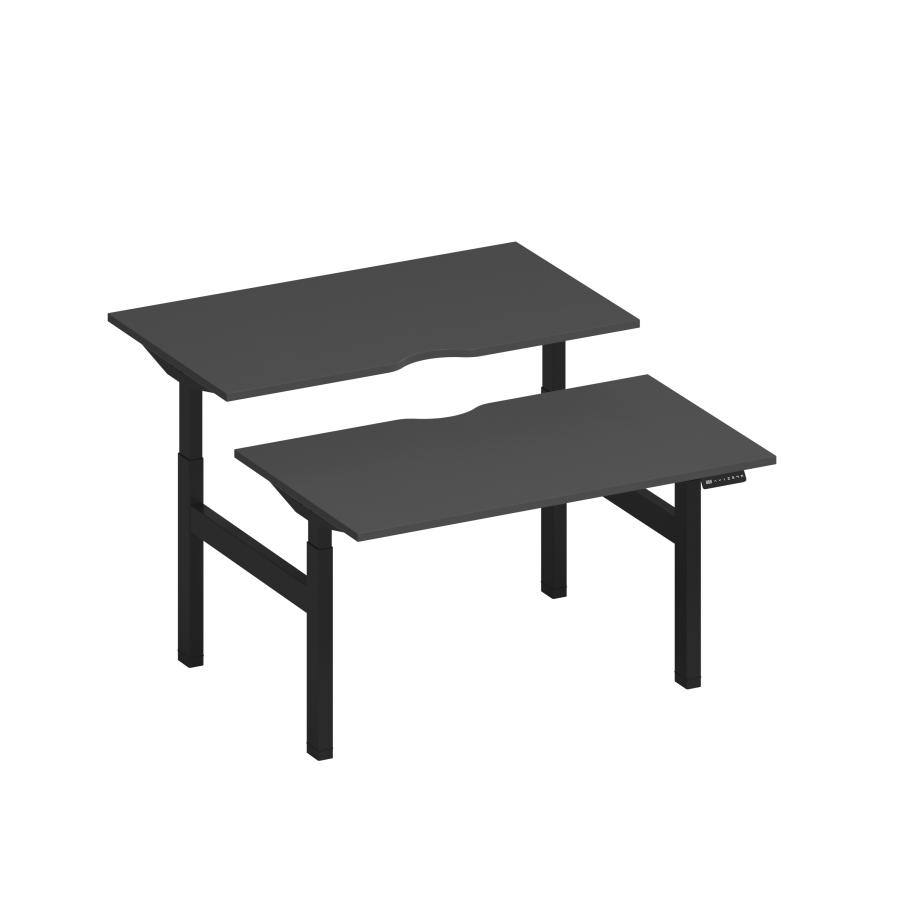 Рабочая станция на электроприводе с вырезами Elevo А2 ЧР 102.2 АР антрацит премиум / черный гладкий