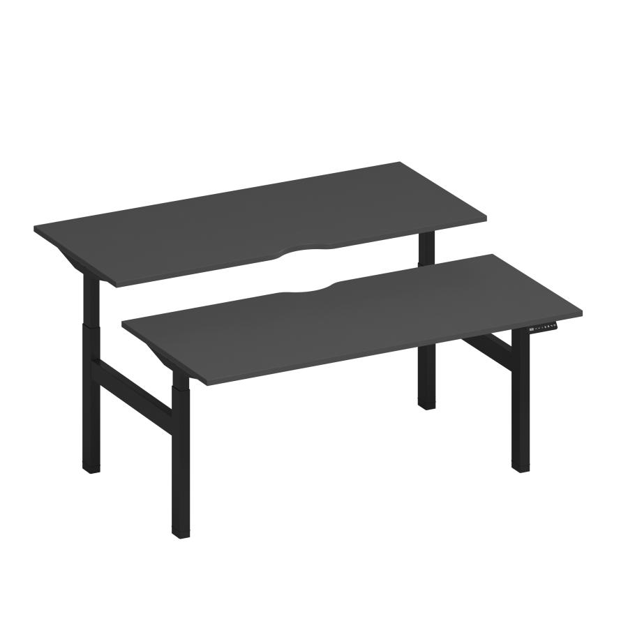 Рабочая станция на электроприводе с вырезами Elevo А2 ЧР 104.2 АР антрацит премиум / черный гладкий