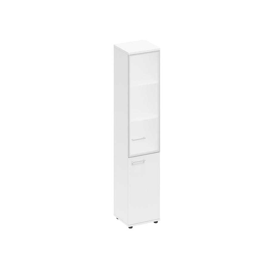 Шкаф для документов узкий правый со стеклянной дверью в алюминиевой рамке Elevo А1 9480 БП белый премиум