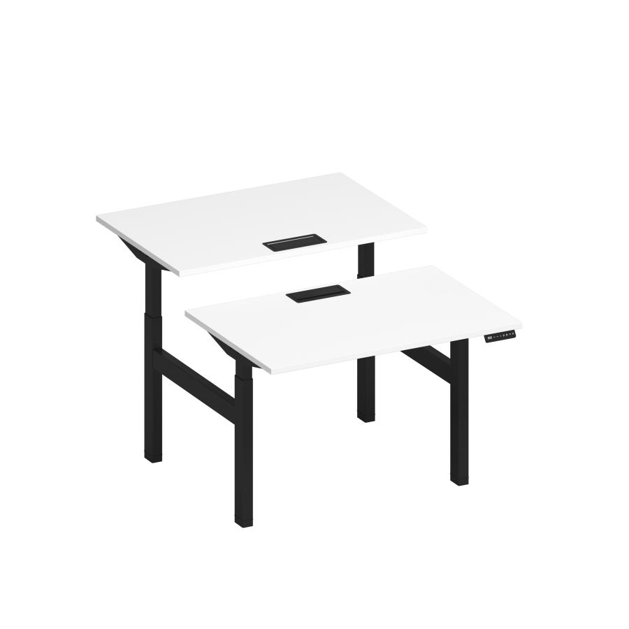 Рабочая станция на электроприводе с заглушками Elevo А2 ЧР 101 БП белый премиум / черный гладкий