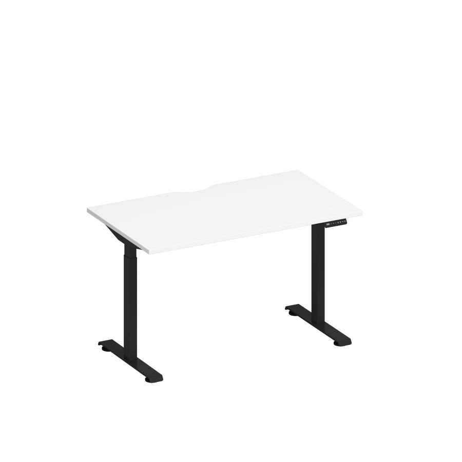 Стол письменный на электроприводе с вырезом Elevo А2 ЧР 002.2 БП белый премиум / черный гладкий