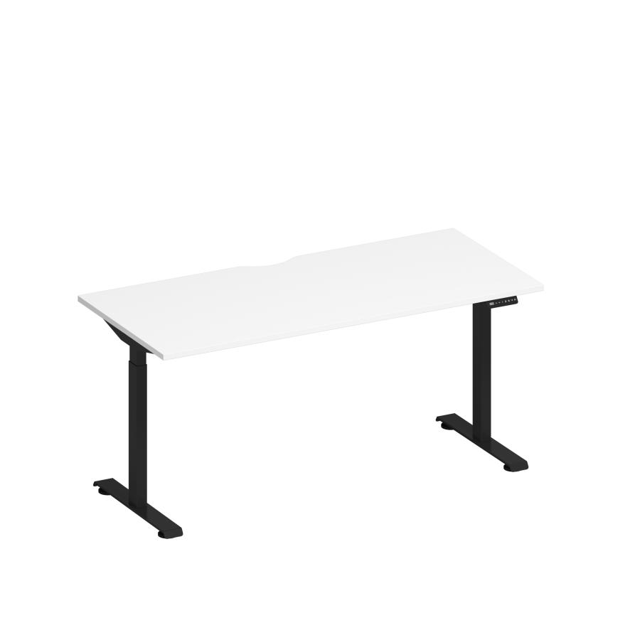 Стол письменный на электроприводе с вырезом Elevo А2 ЧР 004.2 БП белый премиум / черный гладкий