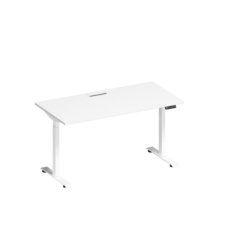 Стол письменный на электроприводе с заглушкой Elevo А2 БГ 003 БП белый премиум / белый гладкий