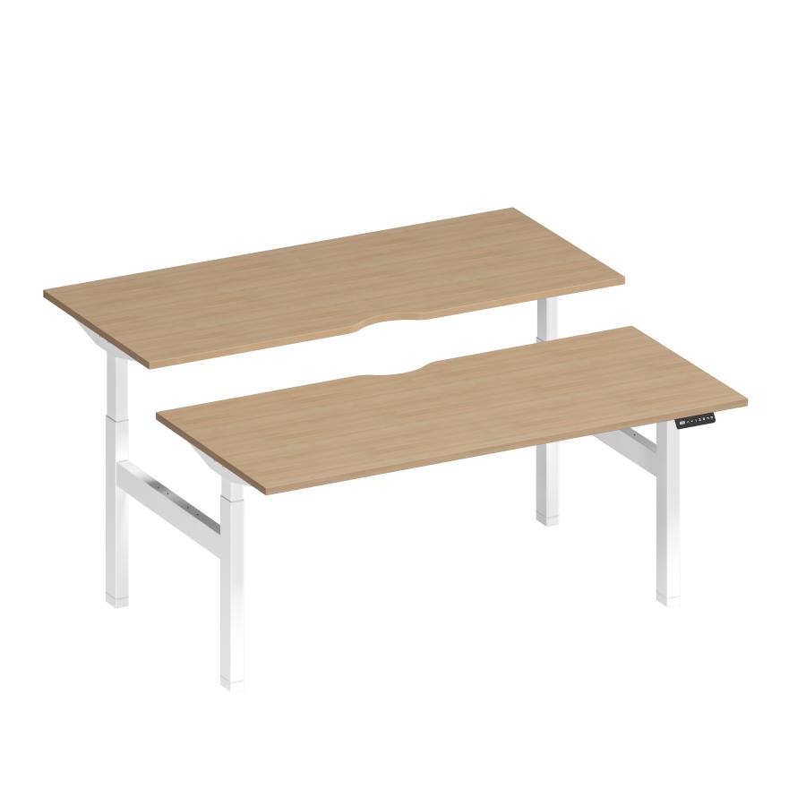Рабочая станция на электроприводе с вырезами Elevo А2 БГ 104.2 НД натуральный дуб / белый гладкий