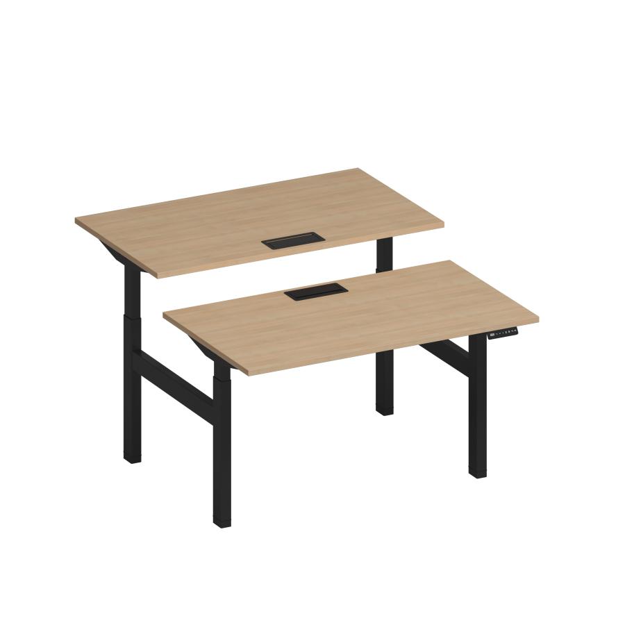 Рабочая станция на электроприводе с заглушками Elevo А2 ЧР 102 НД натуральный дуб / черный гладкий
