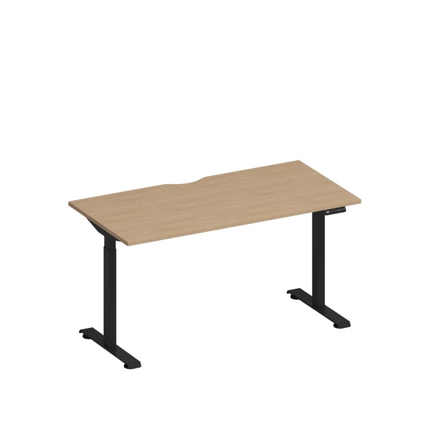 Стол письменный на электроприводе с вырезом Elevo А2 ЧР 003.2 НД натуральный дуб / черный гладкий