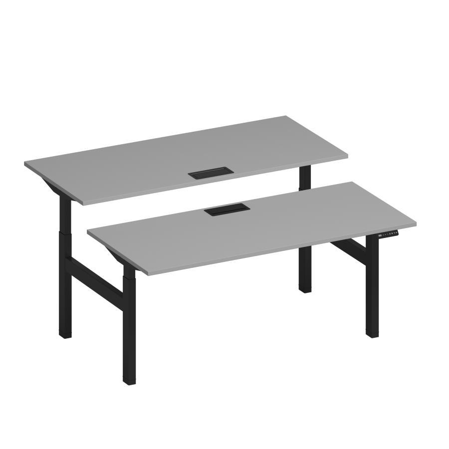 Рабочая станция на электроприводе с заглушками Elevo А2 ЧР 104 СЕ серый / черный гладкий