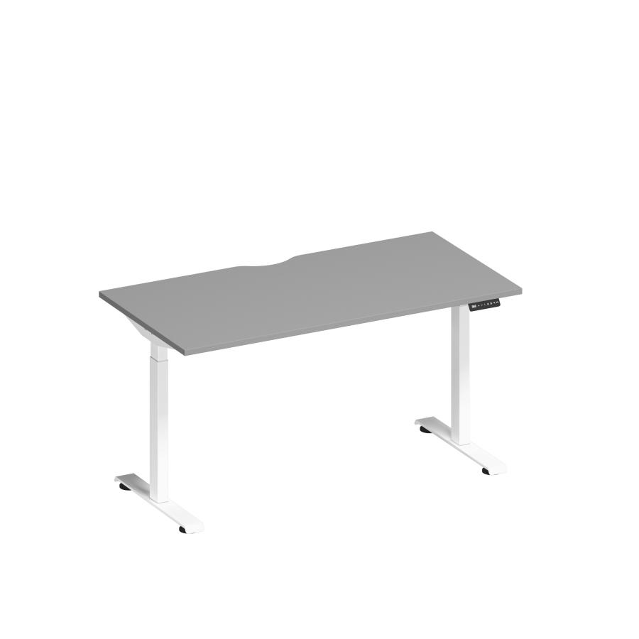 Стол письменный на электроприводе с вырезом Elevo А2 БГ 003.2 СЕ серый / белый гладкий