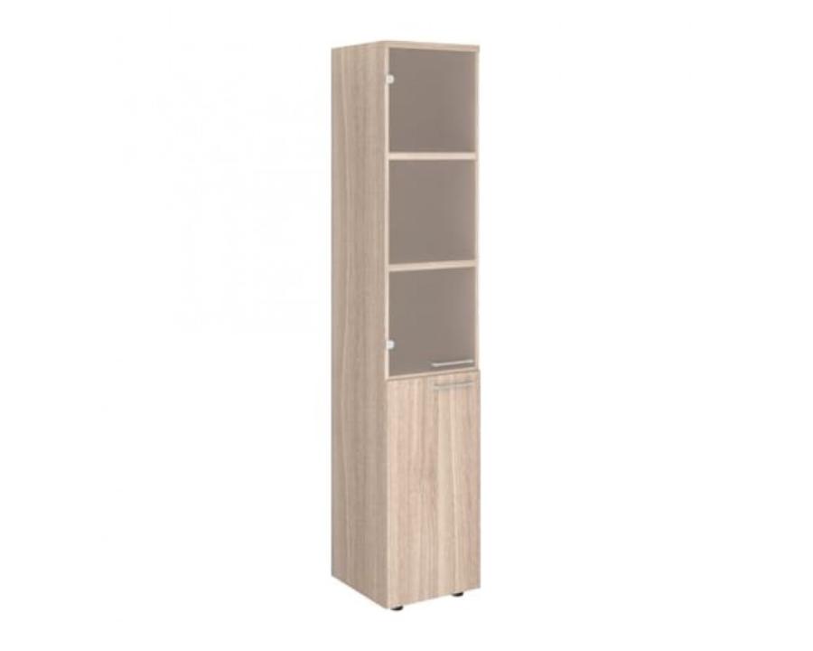 Шкаф узкий 5 уровней двери низ - лдсп верх - стекло в раме левый з/с лдсп — это сочетание качества и эргономики для комфортного использования. Габариты изделия: 399x420x1965. Каркас выполнен из прочного материала толщиной 16 мм, что гарантирует долговечно