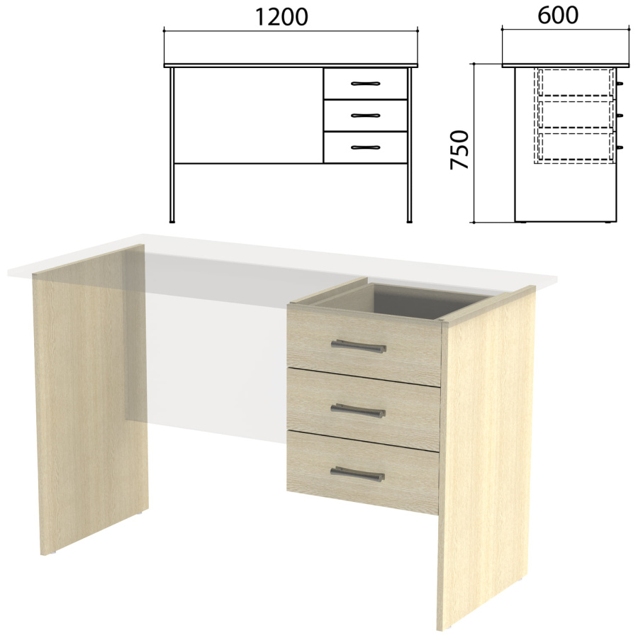 Опоры - ЛДСП 16 мм.. Кромка - ПВХ 0,5 мм.. Подвесная тумба с 3 ящиками.. Регулируемые опоры.. Поставляется в разобранном виде.. В комплект входит крепеж и инструкция по сборке.. Цвет - дуб молочный.. Размер (ШхГхВ) - 1200х600х750 мм. Бренд - КАНЦ. Производитель - Россия. Артикул - СК27.15.2. Штрихкод - 4627088210815