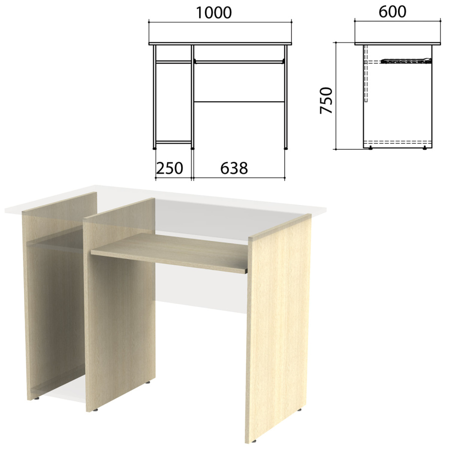 Опоры - ЛДСП 16 мм.. Кромка - ПВХ 0,5 мм.. Регулируемые опоры.. Поставляется в разобранном виде.. В комплект входит крепеж и инструкция по сборке.. Цвет - дуб молочный.. Размер (ШхГхВ) - 1000х600х750 мм. Бренд - КАНЦ. Производитель - Россия. Артикул - СК24.15.2. Штрихкод - 4627088210761