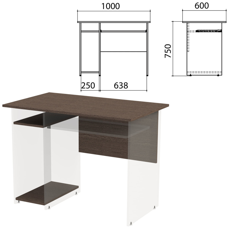 Столешница, царга и горизонтальные стенки - ЛДСП 16 мм.. Кромка - ПВХ 0,5 мм.. Поставляется в разобранном виде.. В комплект входит крепеж и инструкция по сборке.. Цвет - венге.. Размер (ШхГхВ) - 1000х600х750 мм. Бренд - КАНЦ. Производитель - Россия. Артикул - СК24.16.1. Штрихкод - 4627088210341