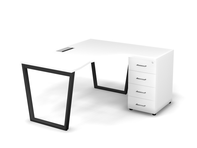 MATRIX 121S153-V Стол эгоном-й с тумбой R, пров-ик Merida (V-опоры) 1580х1380х775 Белый/Темно-серый