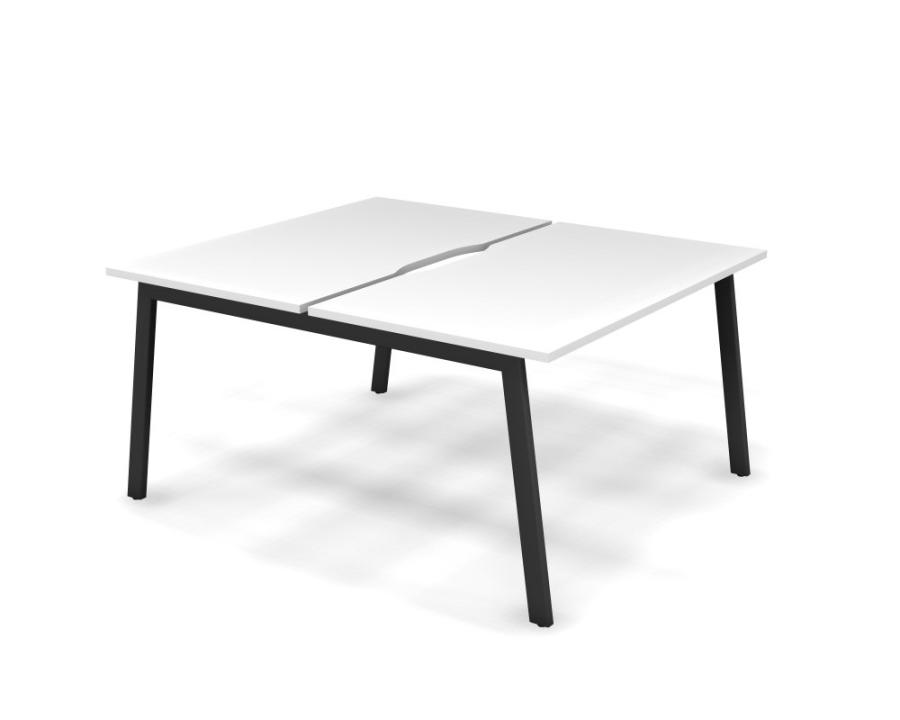 MATRIX 121S201-A Стол прямой двойной, пров-ик вырезной (А-опоры) 1380х1590х775 Белый/Темно-серый