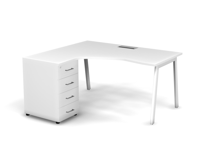 MATRIX 121S133-A Стол эгоном-й с тумбой L, проводник Merida (А-обр. опоры) 1580х1380х775 Белый