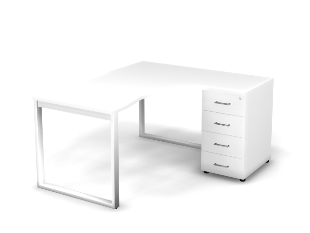 MATRIX 121S151-О Стол эгоном-й с тумбой R, проводник вырезной (O-обр. опоры) 1580х1380х775 Белый