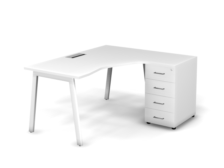 MATRIX 121S153-A Стол эгоном-й с тумбой R, проводник Merida (А-обр. опоры) 1580х1380х775 Белый