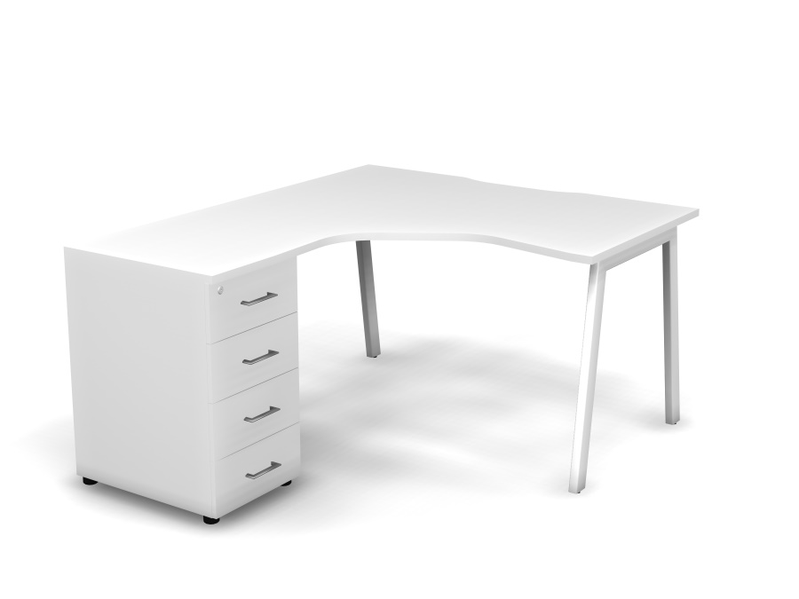 MATRIX 121S170-A Стол эгоном-й с тумбой L, проводник вырезной (А-обр. опоры) 1380х1580х775 Белый