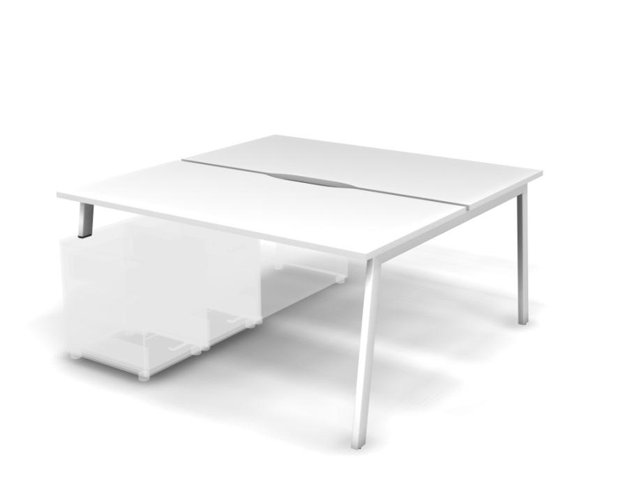 MATRIX 121В202-A Стол прямой двойной с опорой на тумбу, пров. вырезной (А-опоры) 1580х1590х775 Белый