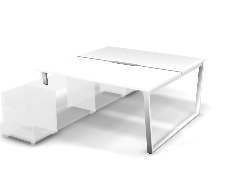 MATRIX 121В202-V Стол прямой двойной с опорой на тумбу, пров. вырезной (V-опоры) 1580х1590х775 Белый