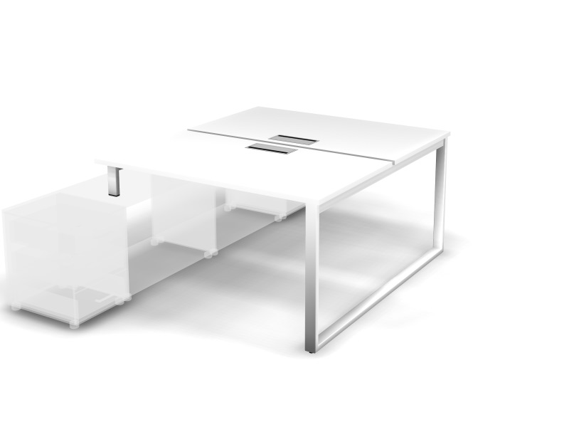 MATRIX 121В301-O Стол прямой двойной с опорой на тумбу, пров-ик Merida (O-опоры) 1380х1590х775 Белый