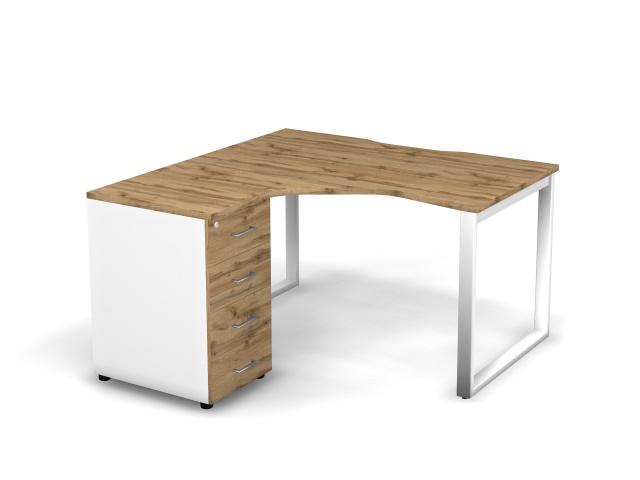 MATRIX 121S130-О Стол эгоном-й с тумбой L, пров-ик вырезной (O-опоры) 1380х1380х775 Дуб Крафт/Белый