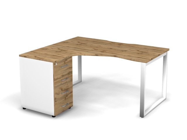 MATRIX 121S131-О Стол эгоном-й с тумбой L, пров-ик вырезной (O-опоры) 1580х1380х775 Дуб Крафт/Белый