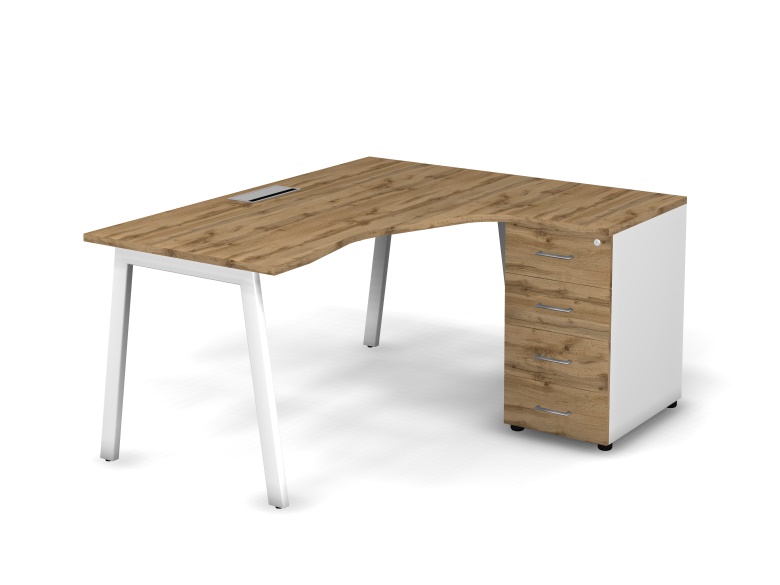 MATRIX 121S153-A Стол эгоном-й с тумбой R, пров-ик Merida (А-опоры) 1580х1380х775 Дуб Крафт/Белый