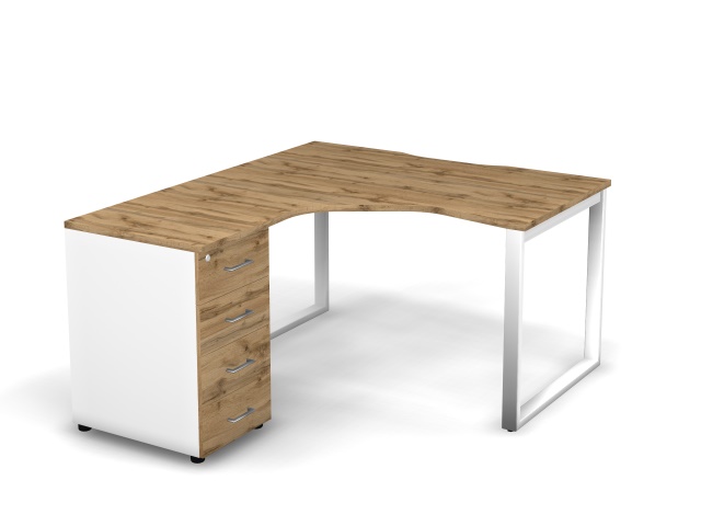 MATRIX 121S170-О Стол эгоном-й с тумбой L, пров-ик вырезной (O-опоры) 1380х1580х775 Дуб Крафт/Белый