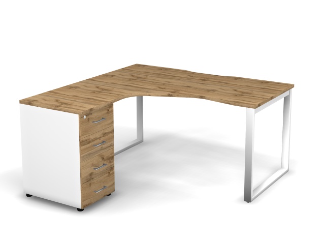 MATRIX 121S171-О Стол эгоном-й с тумбой L, пров-ик вырезной (O-опоры) 1580х1580х775 Дуб Крафт/Белый