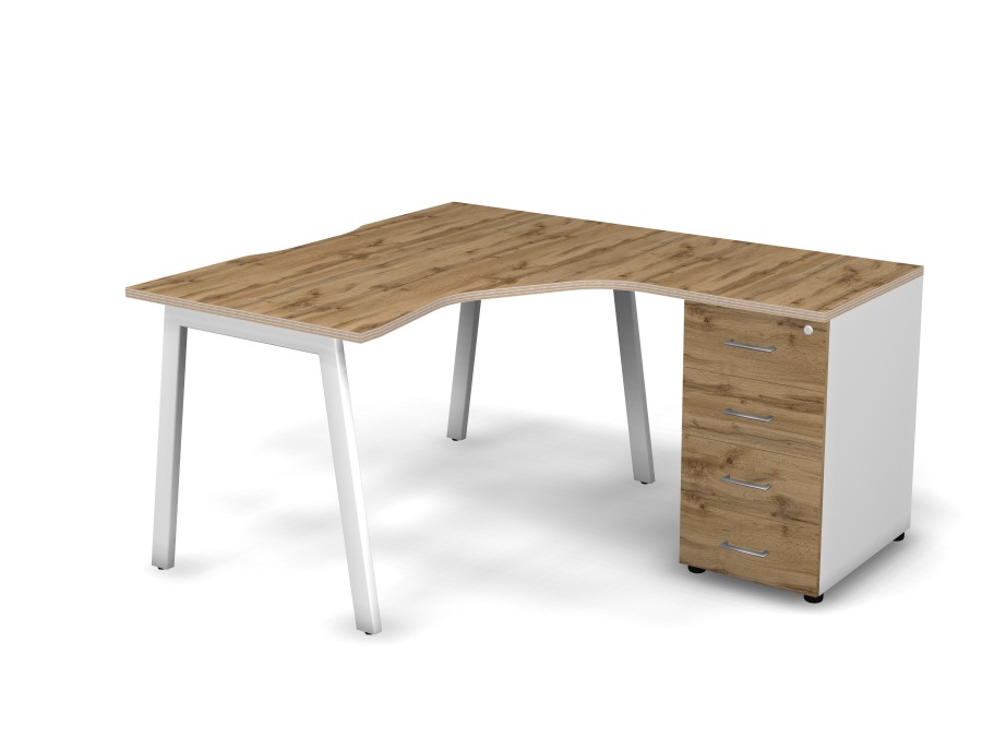 MATRIX 121S190-A Стол эгоном-й с тумбой R, пров-ик вырезной (А-опоры) 1380х1580х775 Дуб Крафт/Белый