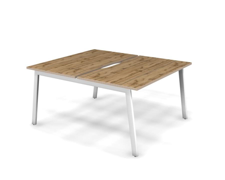 MATRIX 121S201-A Стол прямой двойной, пров-ик вырезной (А-опоры) 1380х1590х775 Дуб Крафт/Белый