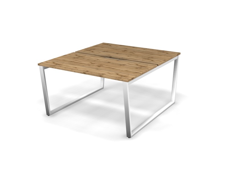 MATRIX 121S201-V Стол прямой двойной, пров-ик вырезной (V-опоры) 1380х1590х775 Дуб Крафт/Белый