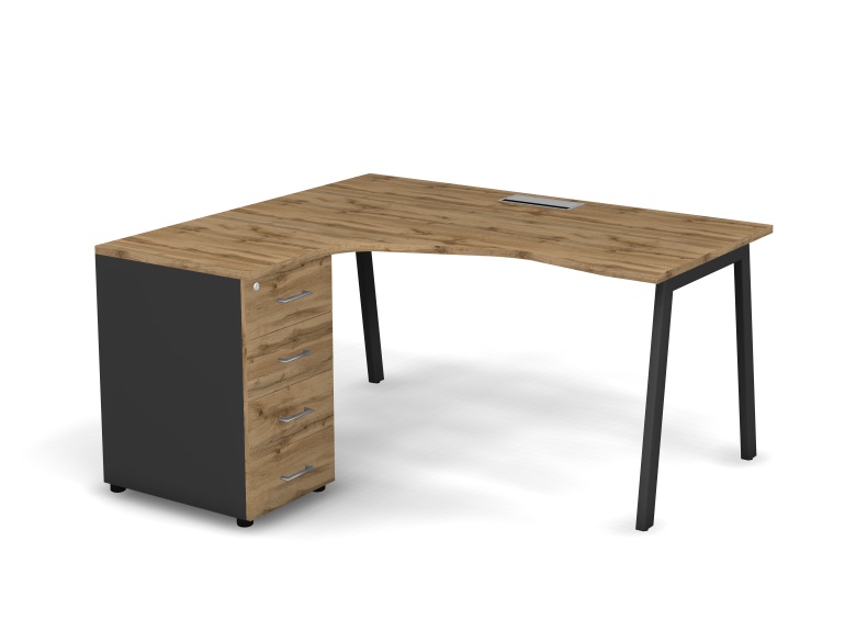MATRIX 121S133-A Стол эгоном. с тумбой L, пров-ик Merida (А-опоры) 1580х1380х775 Дуб Крафт/Темно-сер
