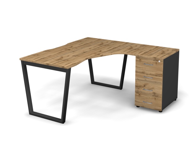 MATRIX 121S191-V Стол эгоном. с тумбой R, пров. вырез. (V-опоры) 1580х1580х775 Дуб Крафт/Темно-серый